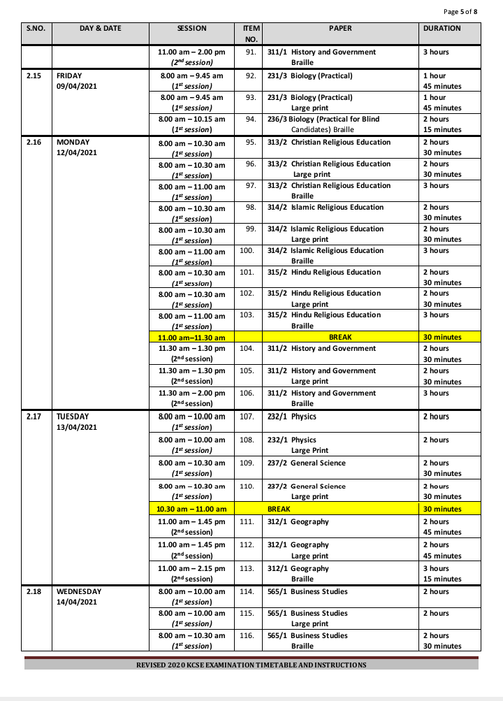 Kcse 2020 Timetable / KCSE 2020 Timetable - 2020 KCSE Examination Timetable ... : Here, in this article we are going to provide you the time table of the 12th class board exam and 10th.. 2020/2021 kcpe timetable download online, knec exam dates. If centres timetable exams after the key time, candidates must be kept under full centre supervision from the key time until the candidates start the exam. This are the questions most of the 2020/2021 waec candidates have been asking. Here, in this article we are going to provide you the time table of the 12th class board exam and 10th. Kcse 2020 will run for a period of 23 days and end on wednesday 21st april 2021 with home science, art and design, power mechanics.